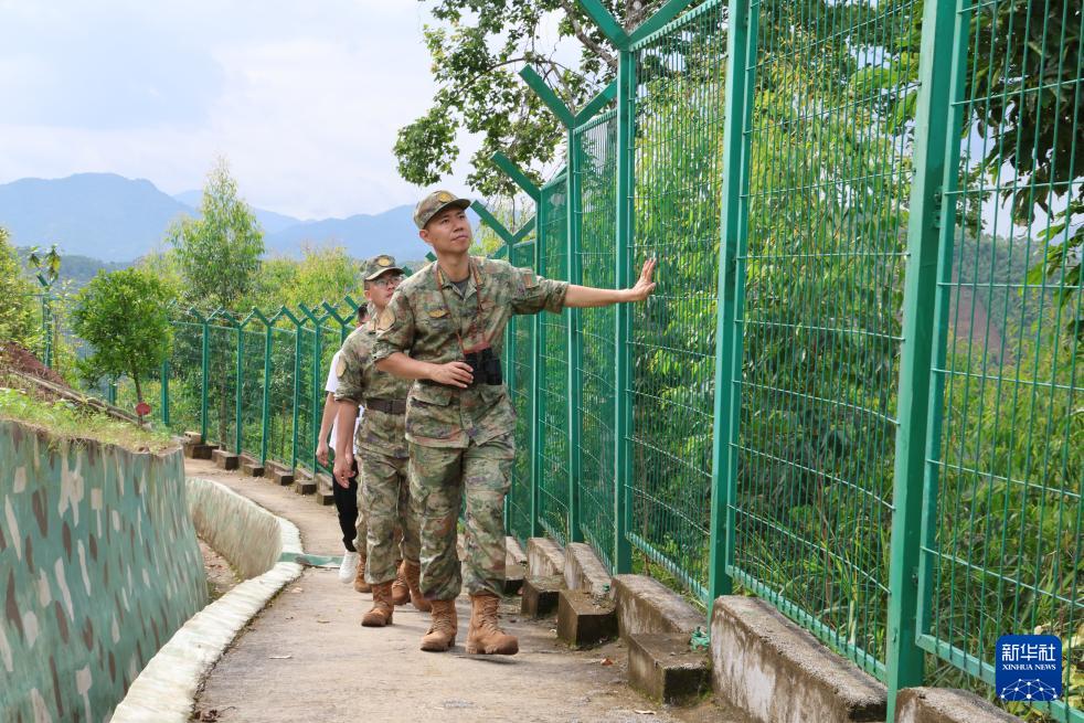 廣西軍區(qū)某部謝亮(前一)組織軍地人員巡察邊境國(guó)防設(shè)施(資料照片)。 新華社發(fā)(梁凱昌攝)