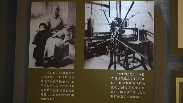講解員張英告訴記者,為了更貼近百姓,與閻錫山的晉鈔區(qū)分開來,所以取名叫興縣農民銀行?!霸冢ㄅd縣)農民銀行的基礎上,我們又成立了西北農民銀行。西北農民銀行當時的主要工作就是印鈔。我們看到的這個就是當時建立的洪濤印刷廠,當時洪濤印刷廠的工作也非常多,從1940年成立到1949年1月,一共印的鈔票價值是3.8億元。1940年5月10日,我們在興縣孫家大院舉辦了開業(yè)大禮,從此西北農民銀行誕生,之后在1948年12月份,西北農民銀行、華北銀行、北海銀行合并,組建了中國人民銀行,至此,西北農民銀行完成了它的歷史使命。”她說。