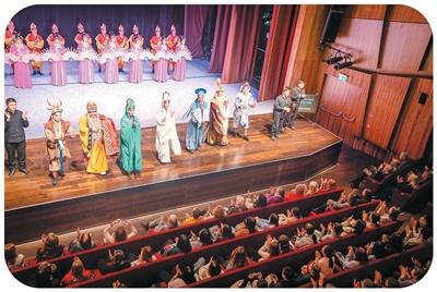 每場演出用LED屏實時滾動由當?shù)卣Z言翻譯的唱詞;扮演豬八戒的演員每到一個國家,都會學習當?shù)卣Z言的俏皮話,在節(jié)目中和“女妖”打招呼;國外演出最多的《白蛇傳》《穆桂英》《三打白骨精》等劇目,包含著愛與誤解、救贖與和解、正邪對立等情感母題,讓國外觀眾能在婺劇表演的身段和唱腔中獲得共鳴……為了讓婺劇更好地走出國門,劇團在演出環(huán)節(jié)融入了不少巧思。