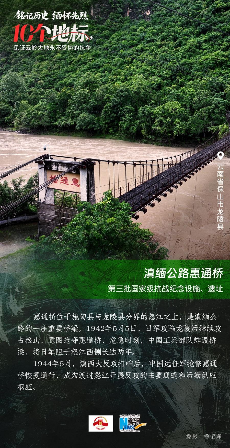 80年過去,曾經(jīng)的戰(zhàn)場硝煙雖散,但英氣永存。在國務(wù)院公布的前三批國家級抗戰(zhàn)紀(jì)念設(shè)施、遺址名錄中,云南省共有10個(gè),分別為騰沖國殤墓園、騰沖滇西抗戰(zhàn)紀(jì)念館,龍陵抗日戰(zhàn)爭紀(jì)念館,國立西南聯(lián)合大學(xué)舊址,抗戰(zhàn)勝利紀(jì)念堂,松山戰(zhàn)役舊址,南洋華僑機(jī)工回國抗日紀(jì)念碑,怒江駝峰航線紀(jì)念館,施甸縣抗日江防遺跡群,滇緬公路惠通橋,滇西抗日戰(zhàn)爭紀(jì)念碑。它們承載著國人共同的歷史記憶與民族情感,也為我們學(xué)習(xí)和傳承抗戰(zhàn)精神提供了現(xiàn)實(shí)條件。