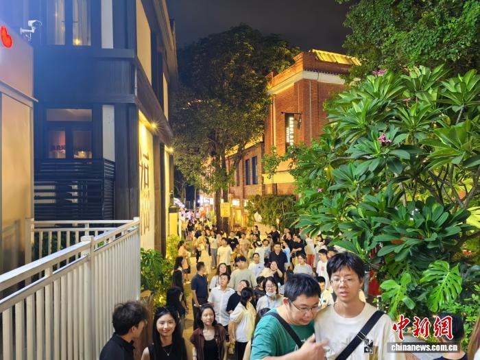 8月23日晚,福州煙臺山歷史風(fēng)貌區(qū)的街巷內(nèi)游人如織。 中新網(wǎng)記者 閆旭 攝
