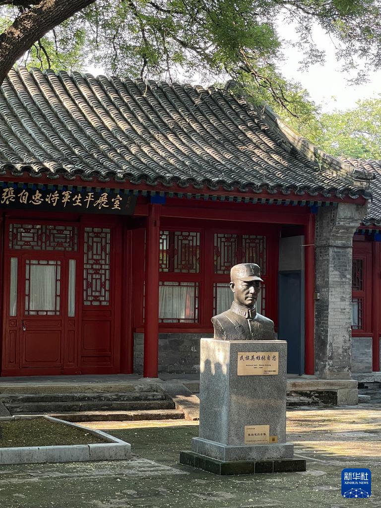 這是位于北京市自忠小學(xué)內(nèi)的張自忠雕像(8月6日攝,手機照片)新華社記者 陳鐘昊 攝