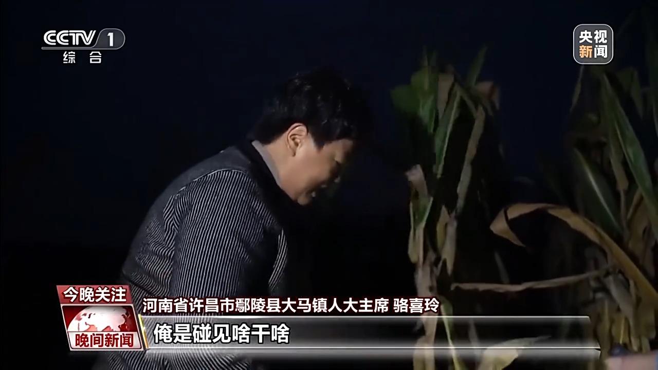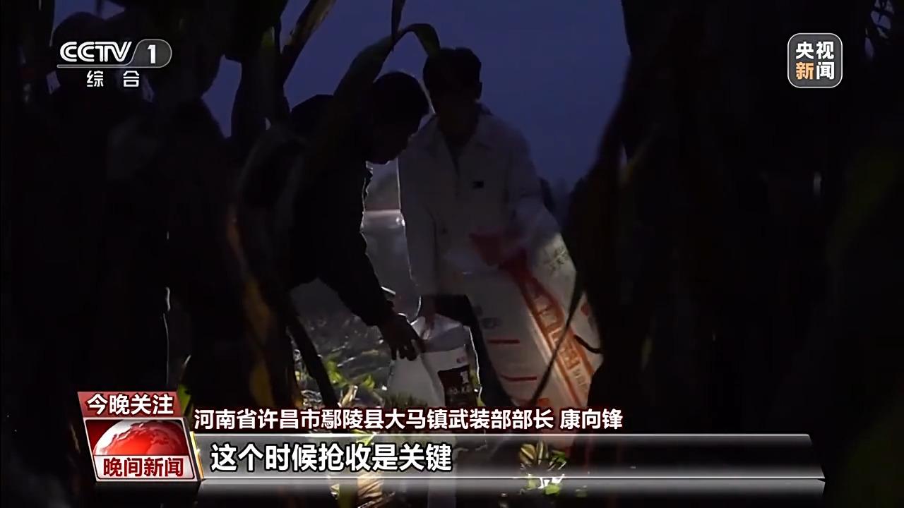 河南省許昌市鄢陵縣太平崗村村民 王進中:黨員干部這么多人,黑了拿著礦燈,都沒停事,吃飯都沒吃飯,收莊稼、收玉米。