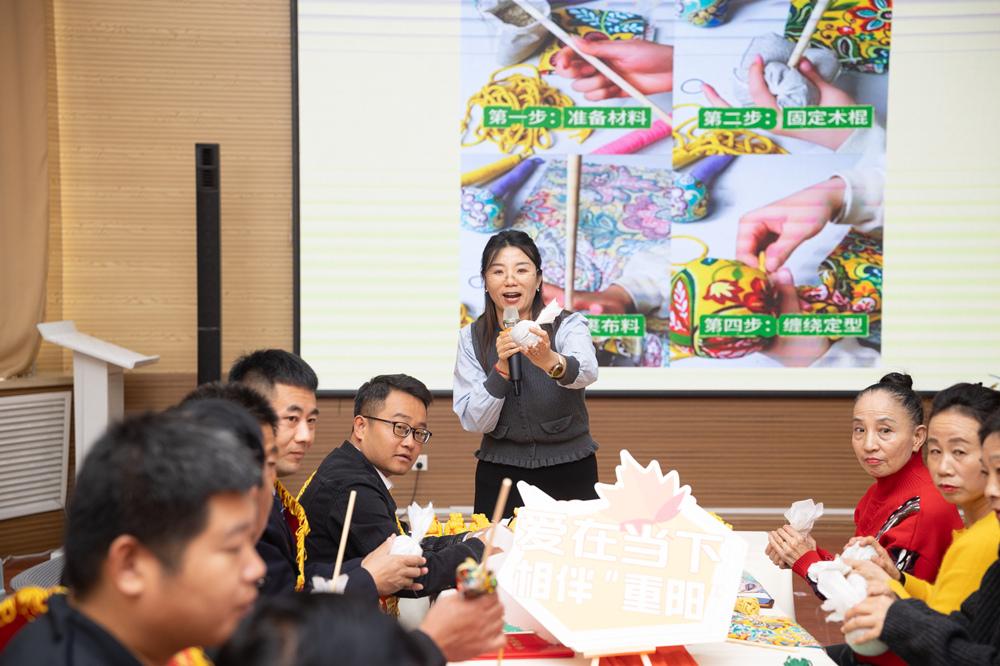 活動現(xiàn)場暖意融融,志愿者為到場長者佩戴寓意安康的茱萸香囊,一抹抹馨香中滿含誠摯祝福。傳統(tǒng)習(xí)俗體驗區(qū)里,區(qū)級“季評學(xué)雷鋒十佳事跡”代表和轄區(qū)居民一起分享孝親故事、體驗制作艾草養(yǎng)生錘、品嘗非遺面藝花饃,在互動交流中感受傳統(tǒng)文化的魅力?!拔覀兊墓?jié)日·重陽”主題文藝演出將活動氛圍推向高潮,靈動的表演、經(jīng)典的唱段、激昂的民樂輪番上演,贏得臺下陣陣掌聲。演出間隙穿插的重陽節(jié)傳統(tǒng)知識與移風(fēng)易俗主題互動問答,讓群眾在歡聲笑語中涵養(yǎng)文明新風(fēng)。