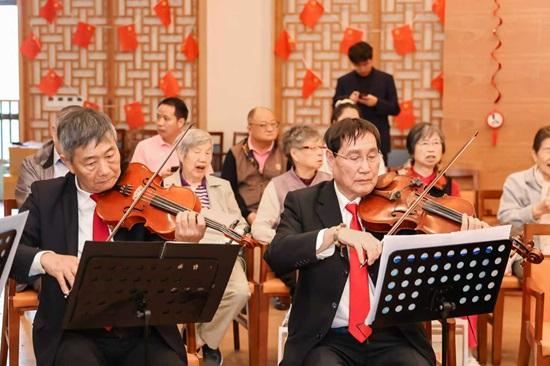 隨后,由上海壹棵松公益基金會支持的齊樂樂隊為現(xiàn)場的老人們帶來了精彩演出。悠揚的旋律里,老人們或輕聲跟唱,或鼓掌打拍,在歌聲中展露笑顏,現(xiàn)場充滿溫情與歡樂?;顒游猜暎珗龊铣蹲蠲老﹃柤t》,用歌聲傳遞著對晚年生活的美好祝愿,為此次活動畫上圓滿句號。