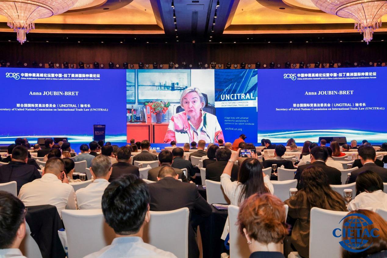 9月17日,2025中國仲裁高峰論壇暨中國—拉丁美洲國際仲裁論壇在北京舉辦。中國國際貿(mào)易促進委員會副會長聶文慧、司法部副部長武增、最高人民法院審判委員會副部級專職委員王淑梅、環(huán)太平洋律師協(xié)會主席Michael CHU出席開幕式并致辭,聯(lián)合國國際貿(mào)易法委員會秘書長Anna JOUBIN-BRET發(fā)表視頻致辭。中國國際經(jīng)濟貿(mào)易仲裁委員會副主任兼秘書長王承杰主持論壇開幕式。