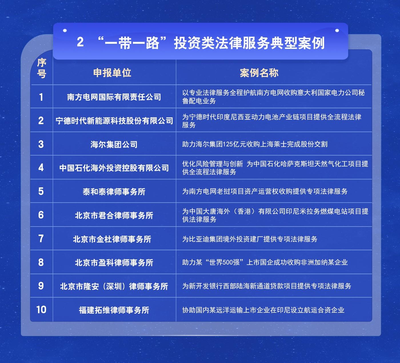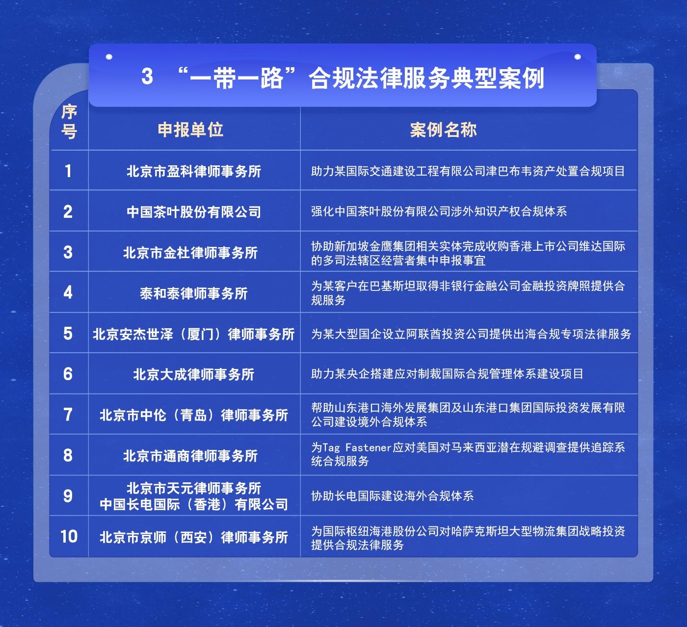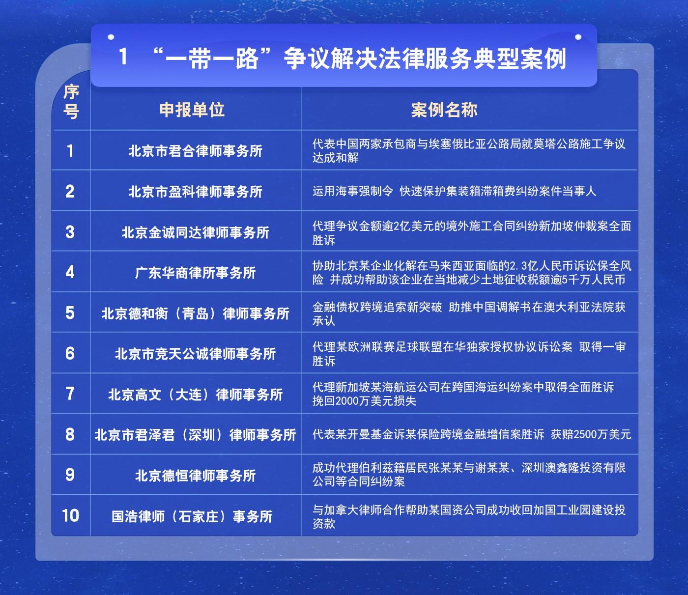 “一帶一路”法律服務創(chuàng)新典型案例名單