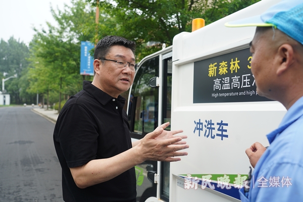 圖說:諸巨明代表實(shí)地調(diào)研環(huán)衛(wèi)車輛