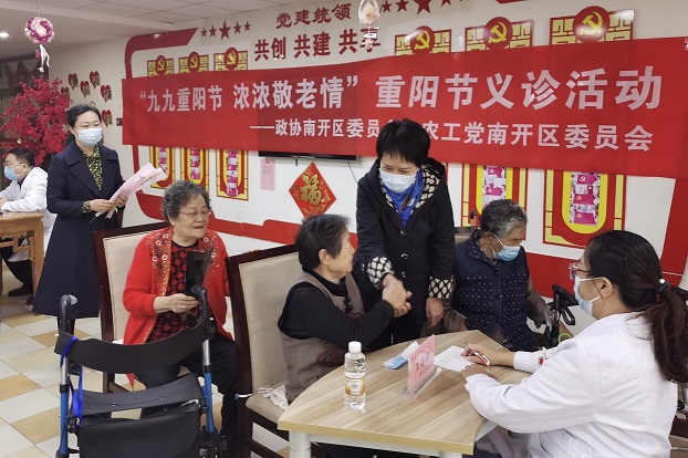 近日,天津市南開區(qū)政協(xié)與農(nóng)工黨南開區(qū)委會聯(lián)合開展“慶重陽、送健康”義診活動。醫(yī)療小組深入南開區(qū)養(yǎng)老中心,為在院老人進(jìn)行義務(wù)診療咨詢,宣傳健康理念,講解用藥常識,以實際行動送上了節(jié)日祝福和溫暖關(guān)愛。 錢麗 李寧馨 攝
