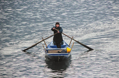 趙明翠購買了一只小船,每次要劃行一個多小時將郵件送到漢江對岸4個村的用戶手中。