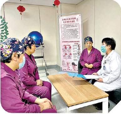 劉英才代表(右一)與婦產(chǎn)科醫(yī)護人員交流