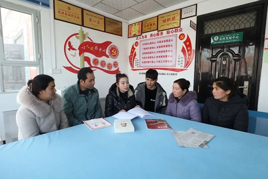 新疆維吾爾自治區(qū)人大代表阿娜爾古麗·圖爾蓀向基層群眾宣講兩會(huì)精神