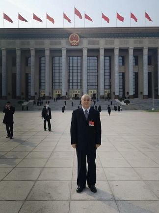 陳建軍參加十三屆全國人大四次會議時,在人民大會堂前留影。