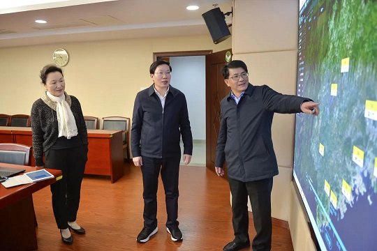調(diào)研組一行實地察看省生態(tài)環(huán)境信息中心、百姓身邊生態(tài)環(huán)境問題處理中心等,聽取省生態(tài)環(huán)境廳廳長許碧瑞關(guān)于生態(tài)云平臺建設(shè)與應(yīng)用情況和全省生態(tài)環(huán)境保護(hù)等工作情況介紹。檀云坤對近年來我省生態(tài)文明建設(shè)取得的成效給予充分肯定。強(qiáng)調(diào):