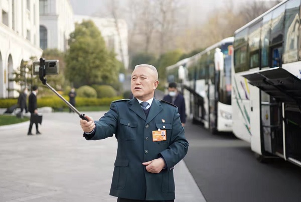 “春風又綠華夏地,祖國到處是春天。又是一年兩會時,特約記者何健忠很高興又與大家見面啦。”3月3日早上7點半,趕在代表團出發(fā)前,全國人大代表,中國郵政集團泰興市分公司城區(qū)分局局長、江平路支局支局長何健忠拿出自拍桿,連續(xù)第三年拍攝起了“上會vlog”,希望給家鄉(xiāng)人民帶來全國兩會的“第一視角”消息。