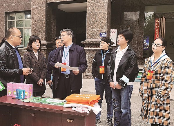 日前,貴陽(yáng)市云巖區(qū)政協(xié)專項(xiàng)視察調(diào)研組到鹽務(wù)街街道辦事處,了解社區(qū)生活垃圾分類處置現(xiàn)狀并形成專題調(diào)研視察報(bào)告送區(qū)委、區(qū)政府領(lǐng)導(dǎo)決策參考。圖為區(qū)政協(xié)主席張洪聽取工作人員介紹,現(xiàn)場(chǎng)隨機(jī)抽查居民如何區(qū)分和投放干濕垃圾。 徐陽(yáng)澤 攝