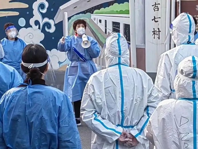 施菊是上海市楊浦區(qū)人大代表,也是延吉七村居民區(qū)黨總支書(shū)記,她在辦公室的折疊椅上睡了近兩個(gè)月,連日高壓力、高強(qiáng)度的工作加上每天僅三四小時(shí)的睡眠,讓她瘦脫了形?!皶?shū)記,你憔悴得眼窩都凹進(jìn)去了?!苯谝?jiàn)到施菊,居民都會(huì)發(fā)出這樣的感慨。作為延七戰(zhàn)疫“領(lǐng)頭雁”,她身先士卒,既當(dāng)指揮員,又當(dāng)戰(zhàn)斗員,堅(jiān)守抗疫一線,盡顯為民本色?!拔覀兪?shū)記是個(gè)超人,千頭萬(wàn)緒的工作都能搞定?!本游刹亢椭驹刚咴u(píng)價(jià)她“什么事情都‘來(lái)噻’”。