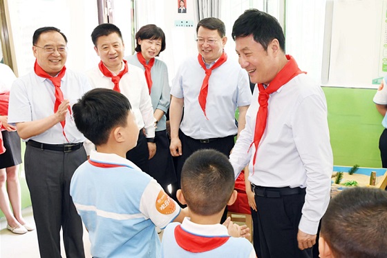 第五橋小學(xué)為城中村小學(xué),90%的學(xué)生為外來務(wù)工人員子女,其中困難兒童25人。郭大為聽取了學(xué)?;厩闆r介紹,觀看了學(xué)生美術(shù)教學(xué)活動,向孩子們致以節(jié)日問候,鼓勵他們鍛煉好身體、學(xué)習(xí)好知識,做一個對社會有用、讓他人喜歡的人。他指出,關(guān)愛兒童就是點(diǎn)亮希望,要給每一名兒童創(chuàng)造美好的學(xué)習(xí)生活環(huán)境,讓向上向善向美的種子早早扎根心靈深處。要嚴(yán)格依法保護(hù),履行法定職責(zé),加快構(gòu)建未成年人保護(hù)工作網(wǎng)絡(luò)體系,合力做實做細(xì)各項工作,依法維護(hù)好未成年人的合法權(quán)益,用行動畫好未成年人保護(hù)的“同心圓”。