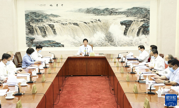 聽取有關(guān)草案和議案審議情況匯報(bào) 栗戰(zhàn)書主持會議