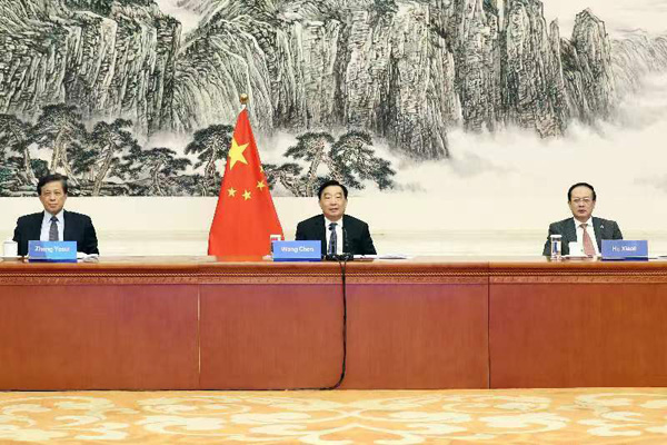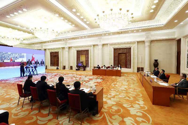 7月12日,中共中央政治局委員、全國人大常委會副委員長王晨在京與格魯吉亞議會第一副議長喬治·沃爾斯基舉行視頻會晤。攝影/許麟