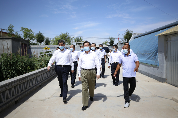 7月15日至17日,中共中央政治局委員、全國人大常委會副委員長王晨率全國人大常委會執(zhí)法檢查組在寧夏進行鄉(xiāng)村振興促進法執(zhí)法檢查。這是7月17日,王晨一行在吳忠市利通區(qū)白寺灘村進行檢查。攝影/左鳴遠