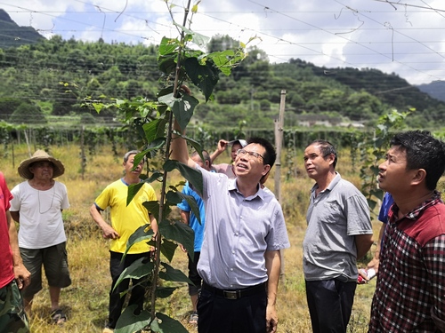 日前,廣西壯族自治區(qū)桂林市永??h百壽鎮(zhèn)政協(xié)委員小組邀請(qǐng)廣西特色作物研究院專家到雙合村,通過(guò)授課講解、實(shí)地指導(dǎo)等形式,送去羅漢果種植技術(shù)。 曾景宏 譚霖 攝