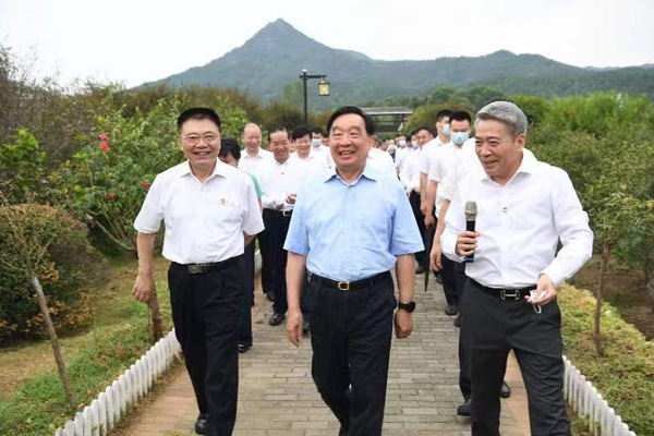 8月16日至18日,中共中央政治局委員、全國人大常委會副委員長王晨率全國人大常委會執(zhí)法檢查組在湖北進行鄉(xiāng)村振興促進法執(zhí)法檢查。這是8月17日,王晨一行在黃岡市羅田縣駱駝坳鎮(zhèn)燕窩灣村進行檢查。攝影/陳跡