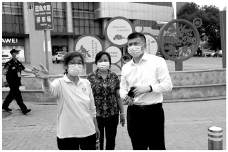 北京市朝陽區(qū)人大代表王正志(右)等根據(jù)居民點(diǎn)題,與朝外街道居民一起開展交通設(shè)施更新“微調(diào)研”。 薛睿杰 攝