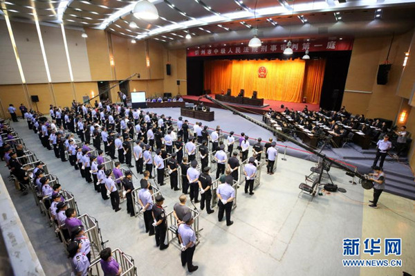 山西省忻州市中級(jí)人民法院依法公開開庭審理被告人朱強(qiáng)等59人涉嫌黑社會(huì)性質(zhì)組織一案(2019年6月24日攝)。新華社發(fā)