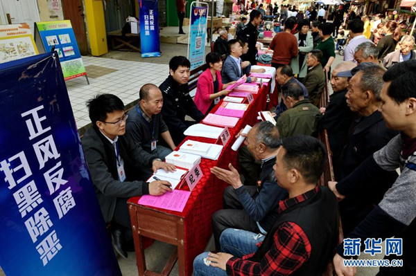 2018年4月1日,福建省建甌市接訪工作人員在小橋鎮(zhèn)墟日上接受群眾來訪。建甌市紀(jì)委在反腐“拍蠅”和掃黑除惡專項(xiàng)斗爭(zhēng)中,將治理黨員干部涉黑涉惡?jiǎn)栴}作為整治群眾身邊腐敗問題的重要工作,通過專項(xiàng)巡察和下鄉(xiāng)接訪等方式廣泛聽取群眾意見,收集問題線索,推進(jìn)全面從嚴(yán)治黨向基層延伸。新華社記者張國(guó)俊攝