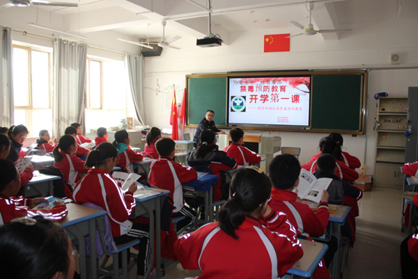 3月1日,內蒙古阿拉善盟額濟納旗禁毒辦副主任、刑事偵查大隊教導員尹治東走進教室,用孩子們喜歡的方式、易于接受的方法為孩子們上了新學期的第一堂禁毒安全教育課。
