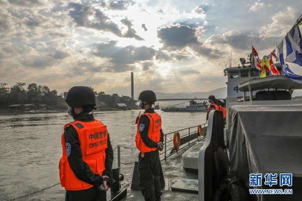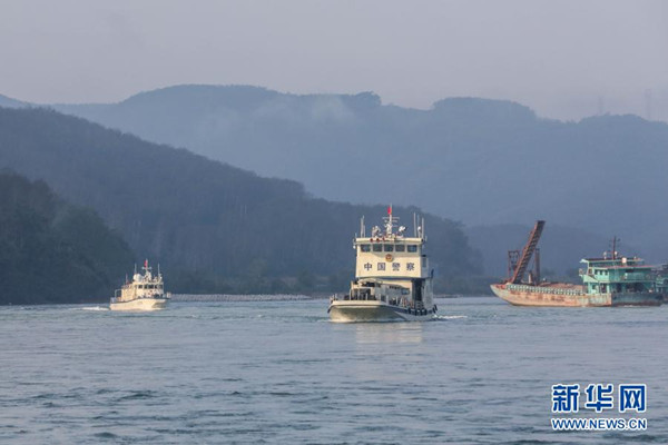 2月23日,第102次中老緬泰湄公河聯合巡邏執(zhí)法編隊啟航,中方執(zhí)法艇編隊巡航經過瀾滄江景哈水域?! ⌒氯A社發(fā)(張壽晨 攝)