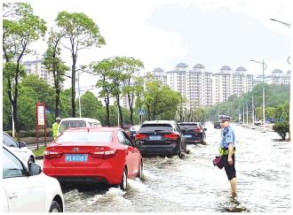 近日,江西省新余市遭受強(qiáng)降雨襲擊,城區(qū)部分道路積水嚴(yán)重,不少車輛及群眾被困。新余市公安局交警支隊(duì)民警迅速奔赴搶險(xiǎn)救援第一線,全力開(kāi)展排險(xiǎn)解困工作。圖為民警涉水疏導(dǎo)指揮交通。