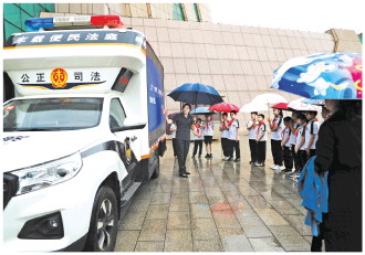 5月22日是國際生物多樣性日,重慶市渝北區(qū)人民法院與重慶自然博物館共同邀請西南師范大學(xué)實驗小學(xué)學(xué)生走進重慶自然博物館,通過“法治教育+科普展覽”,讓環(huán)保理念深植同學(xué)們心中。圖為法院干警在車載便民法庭旁向同學(xué)們講解長江“十年禁漁”計劃。