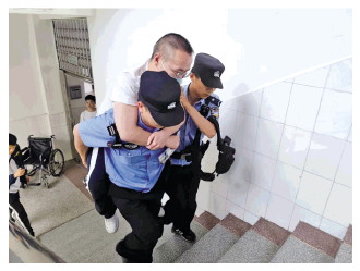 襄陽(yáng)市公安局高新區(qū)分局將工作中發(fā)現(xiàn)的、身患?xì)埣残袆?dòng)不便考生送到考場(chǎng),多名民警接力將其背到考試教室。