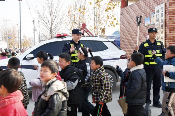 入冬以來,河南省范縣公安局指導和督促轄區(qū)學校健全完善各項安全管理制度,組織民警在學生上下學時段加強巡邏、疏導交通。圖為近日,范縣公安局顏村鋪派出所民警護送小學生離校。