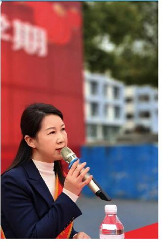 圖為2024年3月,李艷在松桃苗族自治縣群希中學為全體師生宣講如何防范校園欺凌。 資料圖片