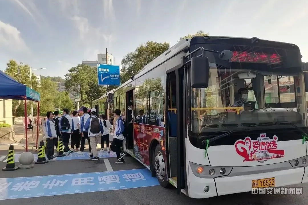 記者從福建省交通運輸廳獲悉,高考首日,全省共組織出租汽車4000余輛、公交車3200余輛、“點對點”包車241輛參加“愛心送考”,接送考生約40.6萬人次。考生憑準(zhǔn)考證可免費乘坐各地公交車、福州地鐵1號線和2號線。福州多個考點大門外,一輛輛張貼“愛心送考”車標(biāo)、系著綠色絲帶的出租汽車整齊停放,志愿者們隨時待命,及時為有需要的考生提供應(yīng)急保障服務(wù)。