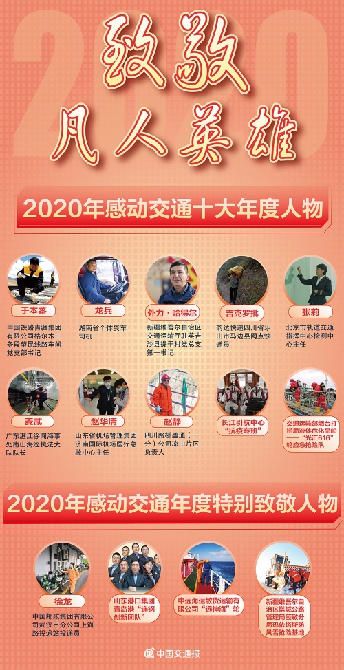 偉大寓于平凡之中。決勝小康,決戰(zhàn)疫情,在2020這極不平凡的一年里,交通運輸行業(yè)涌現(xiàn)出一批來自基層一線的凡人英雄。