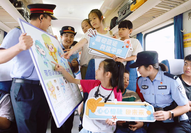 近日,杭州鐵路公安處乘警支隊乘務一大隊聯(lián)合杭州客運段甬西車隊開展“迎亞運、護平安”宣傳活動。