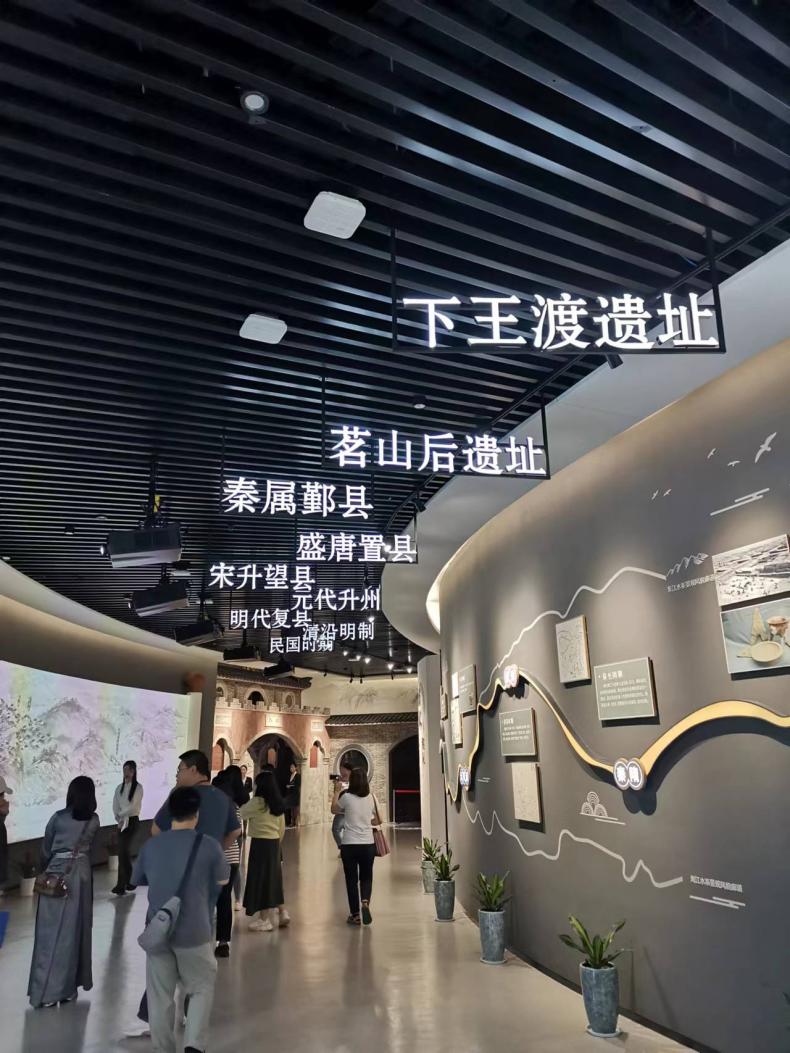 科普中心館內(nèi)布展面積約5000㎡,以“最美最好”為主線串聯(lián)序廳、自然歷史文化廳、規(guī)劃模型廳、全域旅游廳、共享城市廳、碗幕影院廳和尾廳共7個(gè)展廳,借助異彩紛呈的現(xiàn)代科技手段,全面展示奉化悠久歷史、當(dāng)前“追趕跨越”的發(fā)展布局和未來“后來居上”的可期愿景。透過“歲月之美、詩畫之美、美好藍(lán)圖、美好家園”四大內(nèi)容板塊的展示,記者充分感受到奉化的城市歷史之悠久、生態(tài)人文之美麗、新城建設(shè)之美好。據(jù)奉化區(qū)人大代表、中交城投寧波區(qū)域分公司總經(jīng)理劉濤介紹,作為集規(guī)劃展示、學(xué)術(shù)研究、文化交流、教育實(shí)踐、商務(wù)休閑等多功能為一體的城市公共空間,科普中心已成為外界了解奉化的重要窗口,被譽(yù)為奉化“城市之眼”。
