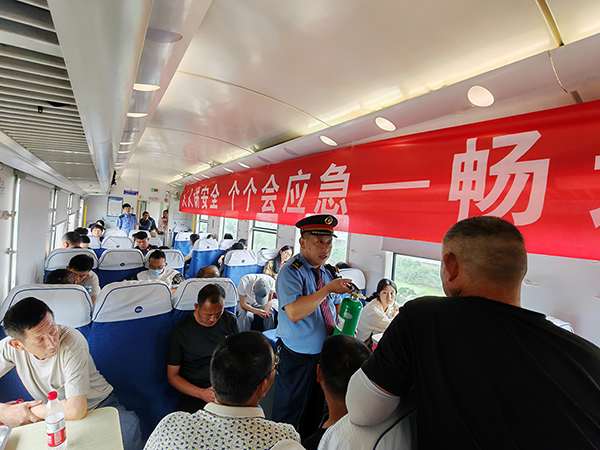 確保安全設(shè)施良好。該車隊(duì)對(duì)列車上部緊急制動(dòng)閥、手制動(dòng)機(jī)、電茶爐等安全、服務(wù)設(shè)施進(jìn)行了全面檢查。重點(diǎn)對(duì)列車易損備品、服務(wù)設(shè)施、應(yīng)急藥物等關(guān)鍵部位或備品進(jìn)行了細(xì)致檢查和統(tǒng)計(jì),發(fā)現(xiàn)問(wèn)題及時(shí)整改。同時(shí),加強(qiáng)了列車運(yùn)行中日常乘務(wù)巡視工作,確保列車環(huán)境和服務(wù)設(shè)施在運(yùn)行過(guò)程中始終處于良好狀態(tài)。