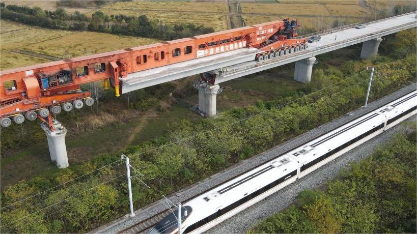 這是中國鐵建大橋局新建滬寧合高鐵箱梁架設(shè)現(xiàn)場(chǎng)。