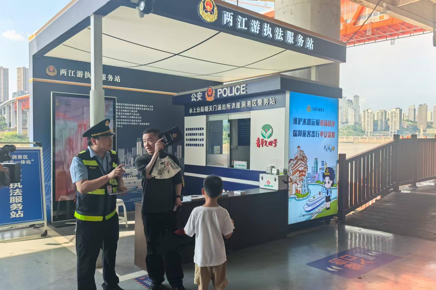 針對(duì)兩江游游客易迷路問(wèn)題,執(zhí)法總隊(duì)設(shè)立服務(wù)站,提供道路指引、乘船咨詢等服務(wù),配備急救用品、飲用水、藥品等免費(fèi)物資。據(jù)介紹,今年暑運(yùn)兩江游日均客流超1.1萬(wàn)人,服務(wù)站日均服務(wù)超300人次。