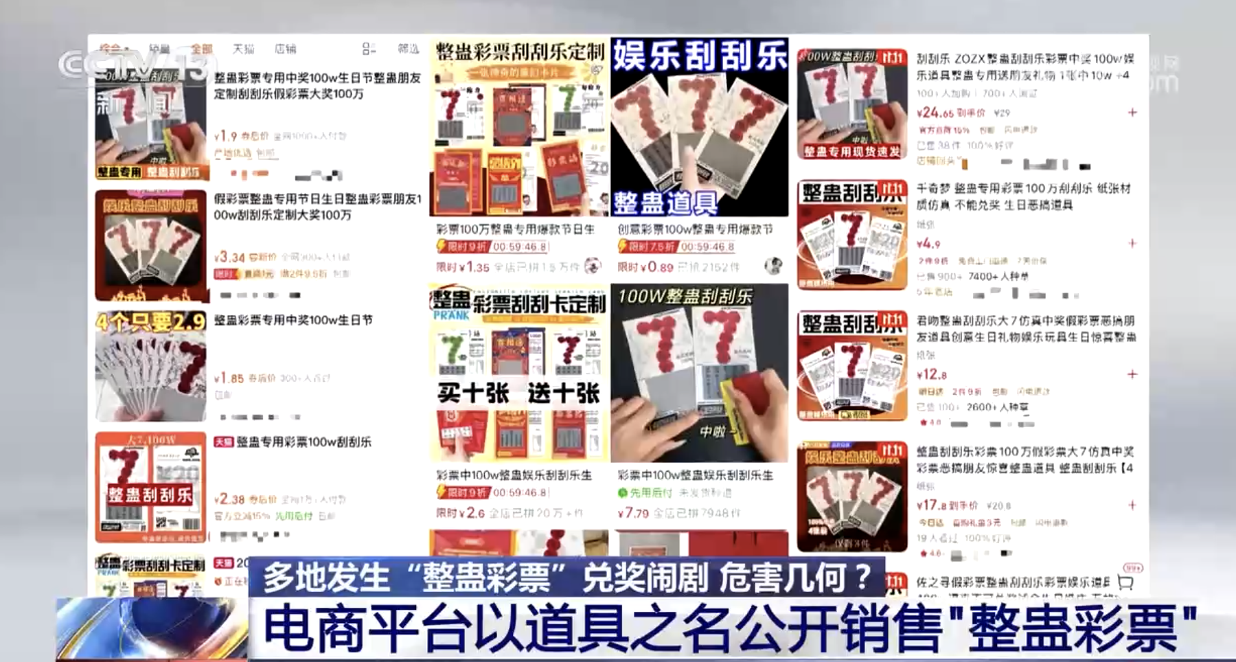 多地發(fā)生“整蠱彩票”兌獎鬧劇 危害幾何?電商平臺以道具之名公開銷售“整蠱彩票”