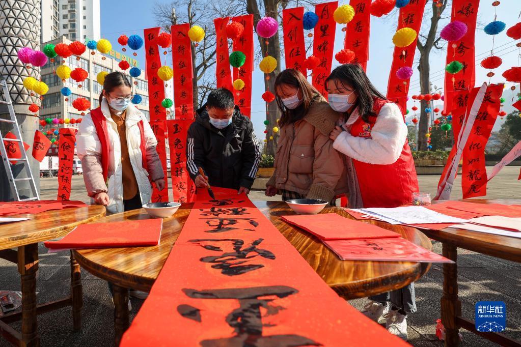 隨著春節(jié)臨近,各地開展各式各樣的寫春聯(lián)送祝?;顒?dòng),營(yíng)造喜慶的節(jié)日氛圍。