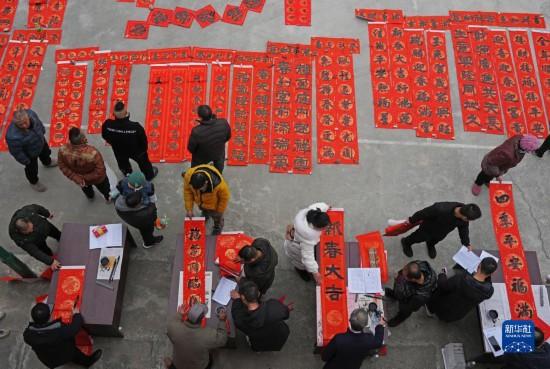 春節(jié)臨近,多地組織書法志愿者走進(jìn)社區(qū)、工地等場(chǎng)所,為人們書寫春聯(lián)和福字,迎接春節(jié)的到來(lái)。