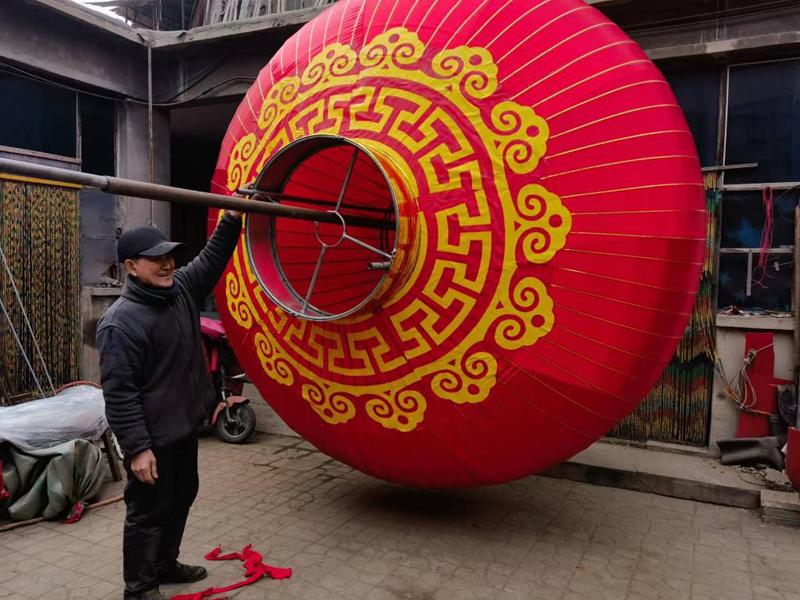 “這個規(guī)格是3米的,算是中等大小。”白軍平熟練地撐開了一個大紅燈籠。打小跟老人學燈籠技藝,白軍平最擅長制作各種規(guī)格的大燈籠。