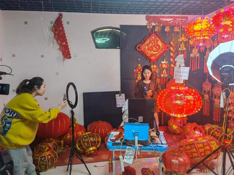 “如果買回去春節(jié)用的,可以看看3號鏈接,這款燈籠比較喜慶,適合家用……”在村內(nèi)一棟3層辦公樓中,7個直播間正在直播帶貨。負責人蘇云廣介紹,最近每天的營業(yè)額都超過了30萬元。