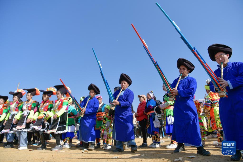 1月29日,苗族群眾在中排村參加“跳月”活動(dòng)。